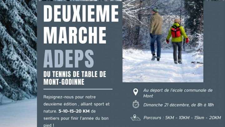 En ligne MONT (NAMUR)Marche 5 - 10 - 15 - 20 km Entité:YVOIRDate:21/12/2025Province:Namur Plus d'infos